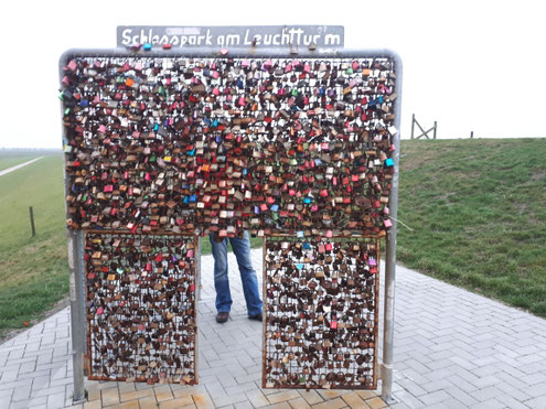 dem Leuchtturm montiert worden waren und an denen verliebte Paare ein Vorhängeschloss mit ihren Namen anbringen konnten.